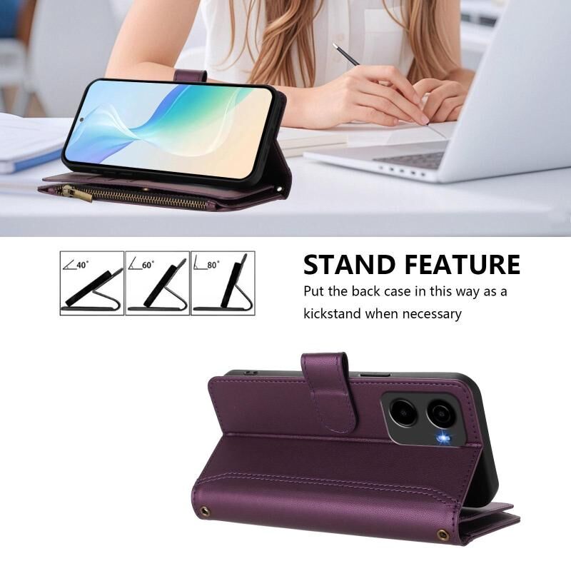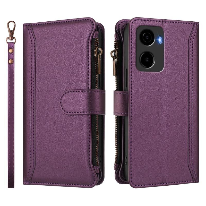 For Cricket Magic 2 5G Magnetic Closure 9 Card Slots Zipper Leather Case with Hand Strap(Purple)