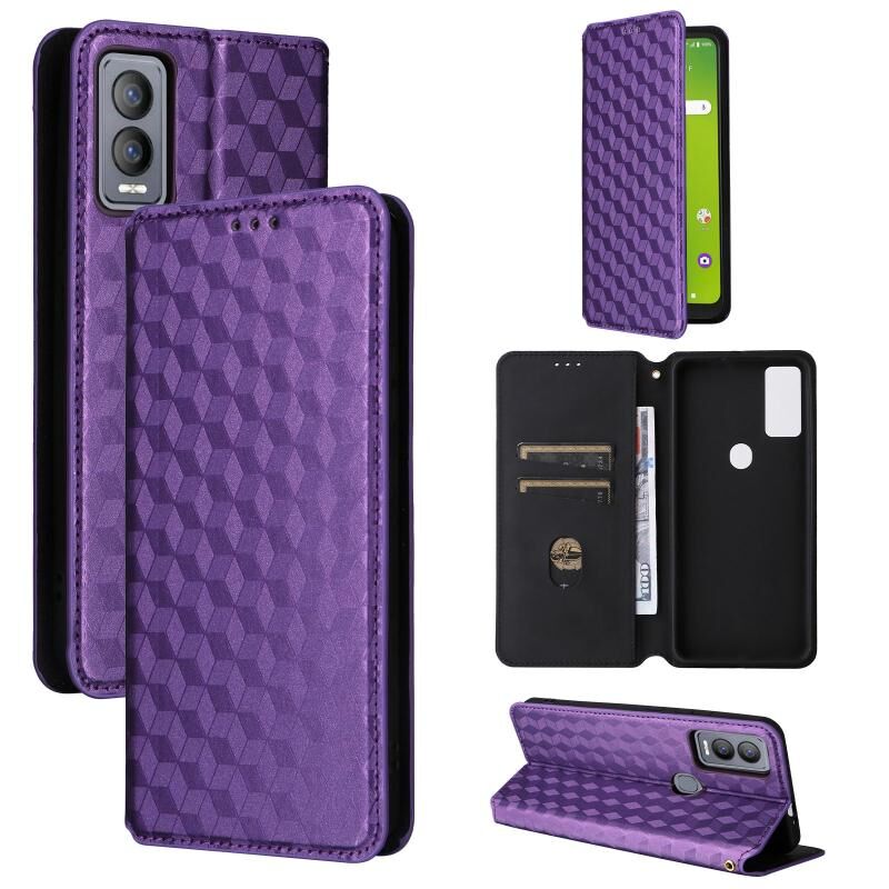 Θήκη τηλεφώνου Cricket Magic 5G Cubic Grid Texture Flip από δέρμα (Μαύρο)