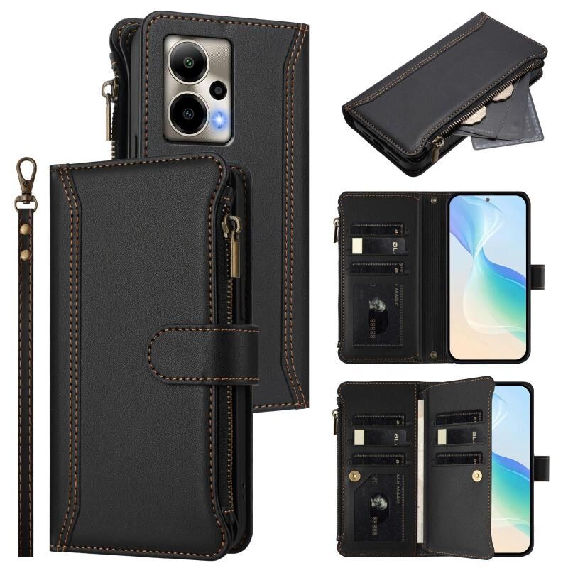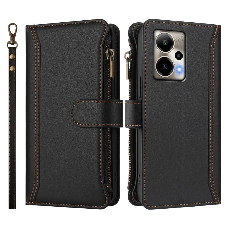 For Cricket Outlast 5G Magnetic Closure 9 Card Slots Zipper Leather Case with Hand Strap(Black)