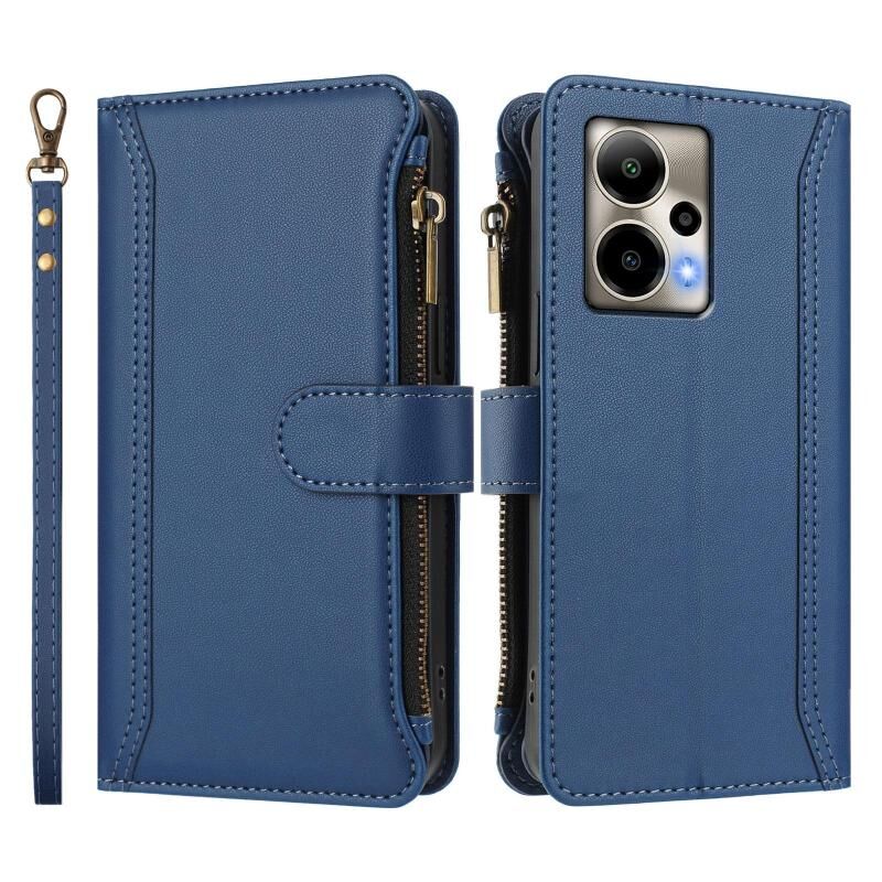 For Cricket Outlast 5G Magnetic Closure 9 Card Slots Zipper Leather Case with Hand Strap(Dark Blue)