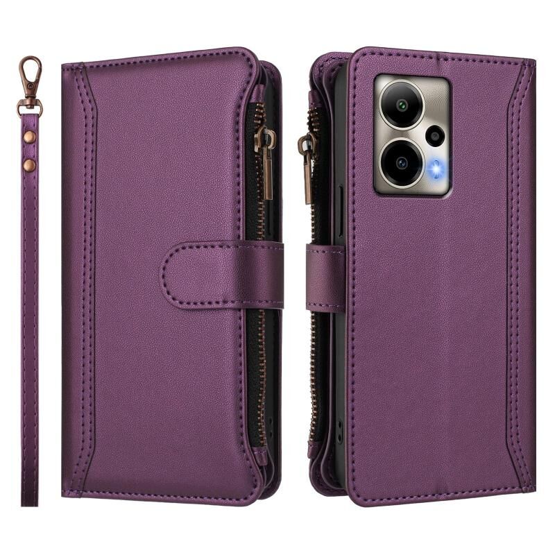 For Cricket Outlast 5G Magnetic Closure 9 Card Slots Zipper Leather Case with Hand Strap(Purple)