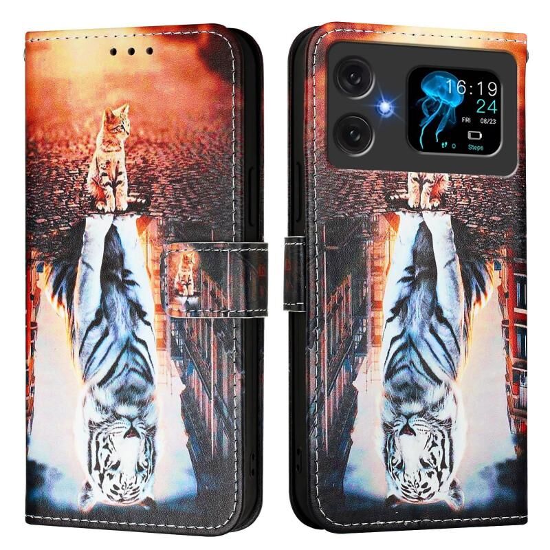 Θήκη τηλεφώνου Cubot A20 με έγχρωμο σχέδιο, απλή ύφανση δέρματος (Γάτες και Τίγρεις)