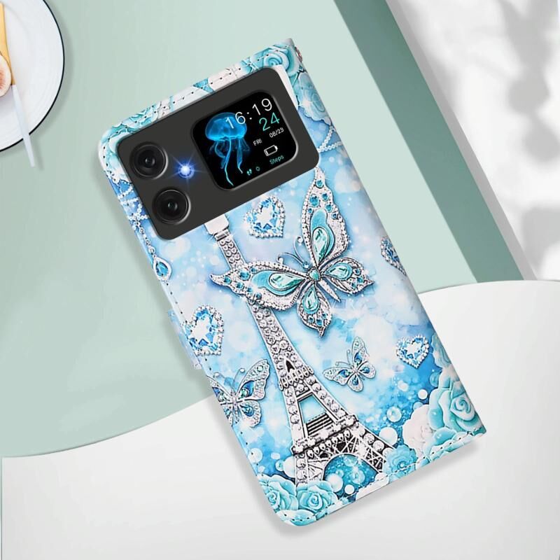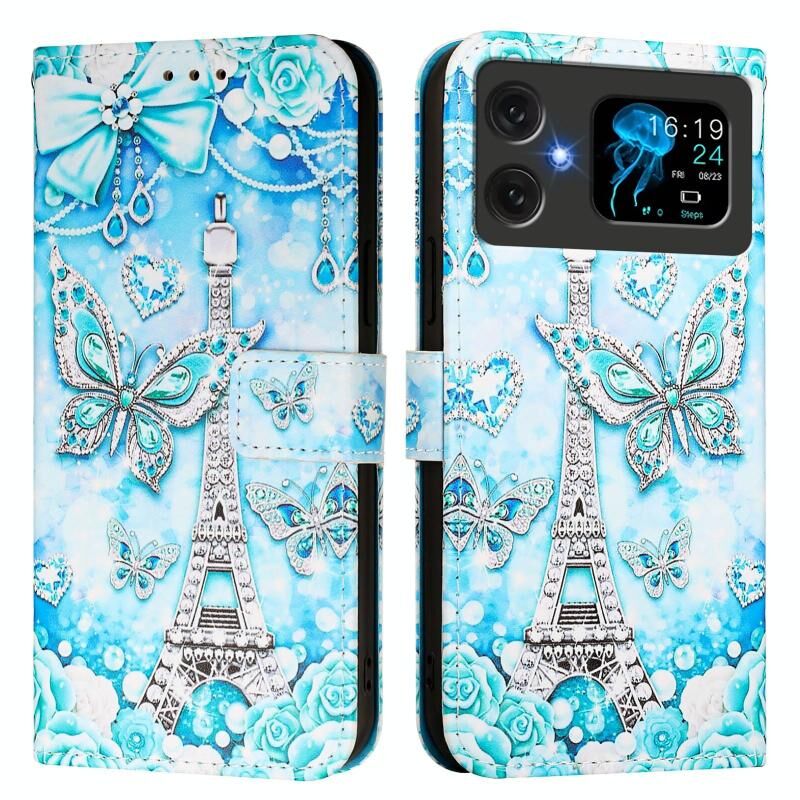 Θήκη τηλεφώνου Cubot A20 με έγχρωμο σχέδιο, απλή ύφανση δέρματος (Πύργος Πεταλούδα)