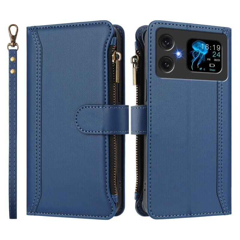 For Cubot A20 Magnetic Closure 9 Card Slots Zipper Leather Case with Hand Strap(Dark Blue)