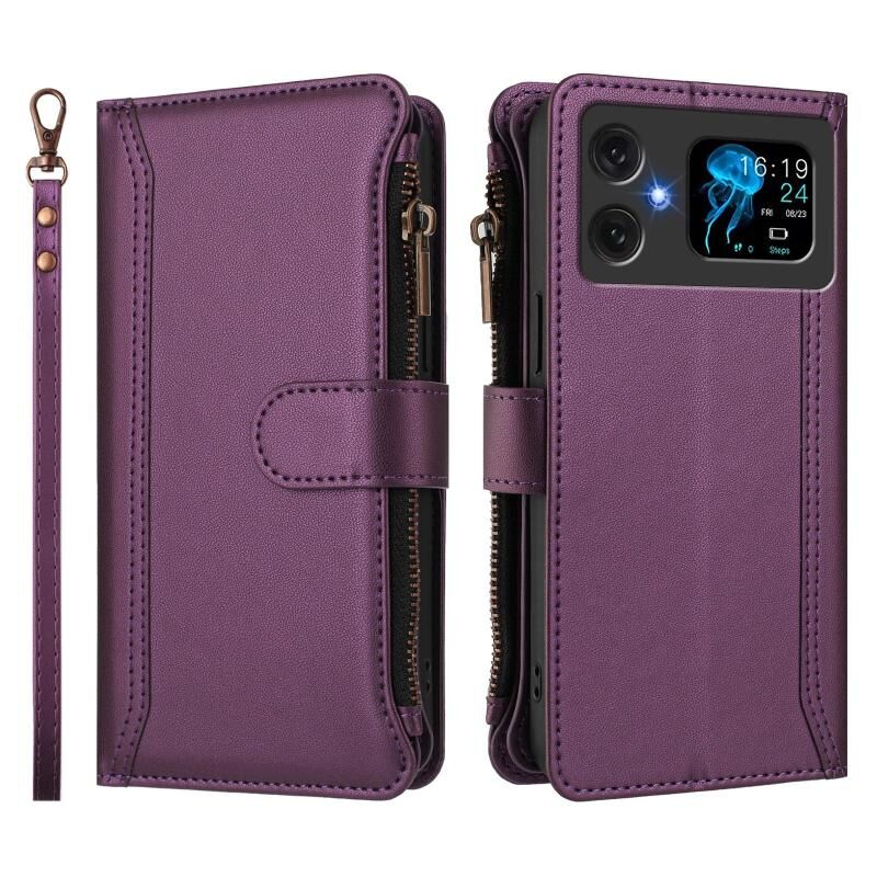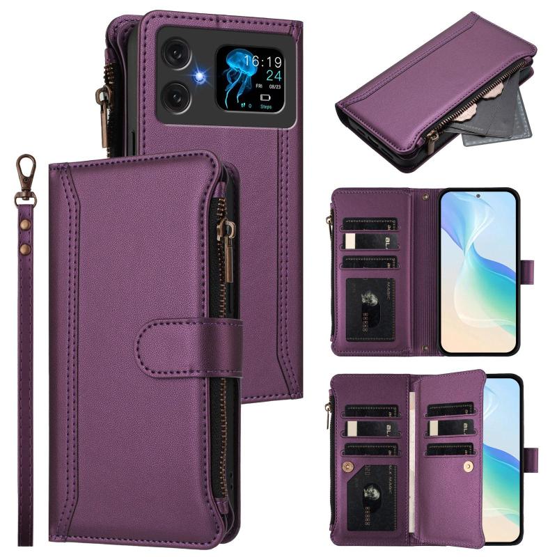 For Cubot A20 Magnetic Closure 9 Card Slots Zipper Leather Case with Hand Strap(Purple)
