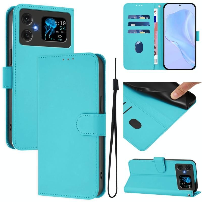 Για το Cubot A20 Skin Feel Solid Color δερμάτινη θήκη τηλεφώνου με κορδόνι (Lake Blue)