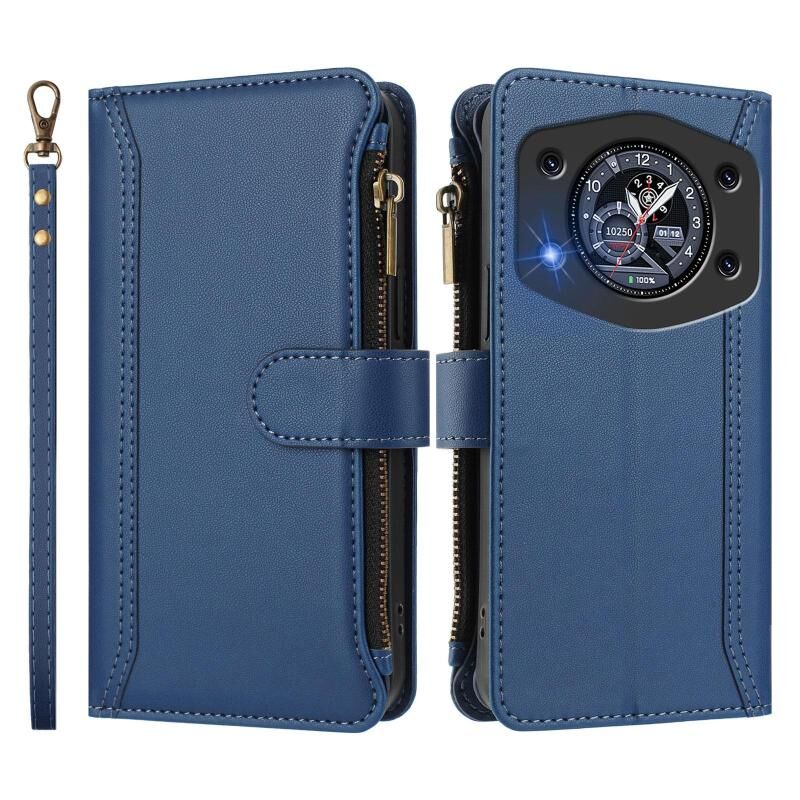 For Cubot A30 Magnetic Closure 9 Card Slots Zipper Leather Case with Hand Strap(Dark Blue)