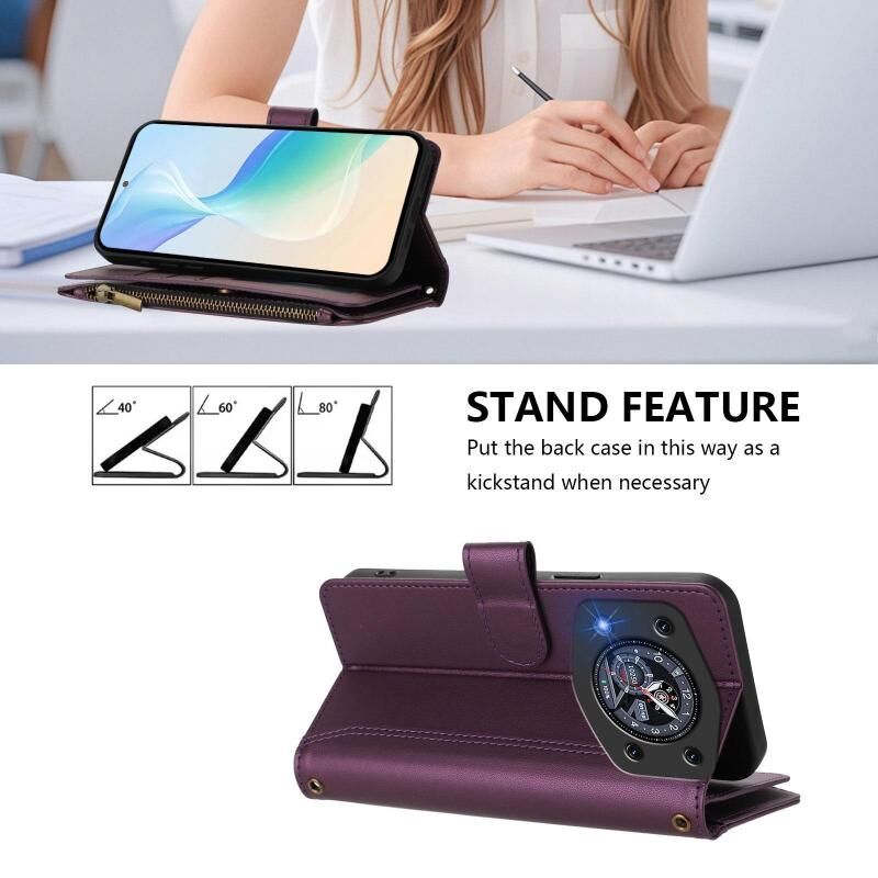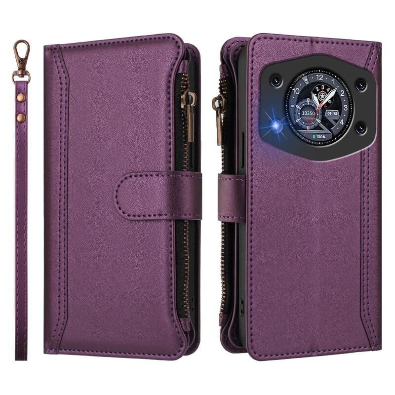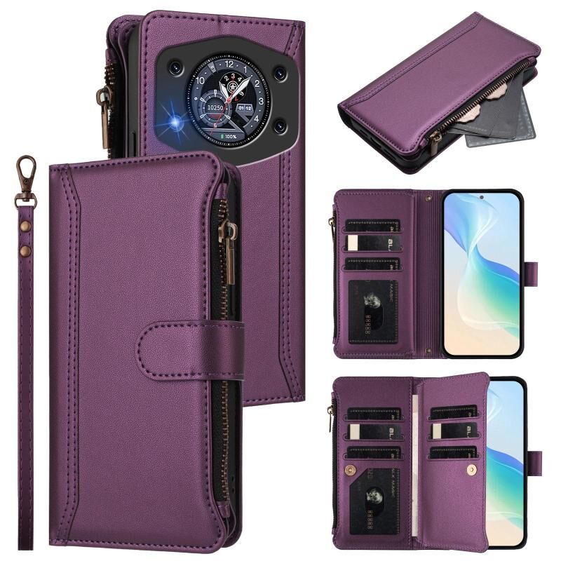 For Cubot A30 Magnetic Closure 9 Card Slots Zipper Leather Case with Hand Strap(Purple)