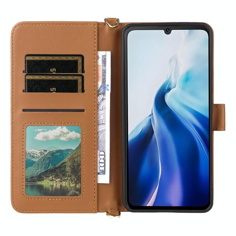 2. Λειτουργία πορτοφολιού: Η δερμάτινη θήκη είναι εξοπλισμένη με 6 υποδοχές καρτών, 1 υποδοχή για μετρητά και 1 κορνίζα για την τοποθέτηση καρτών και ενός μικρού ποσού μετρητών.