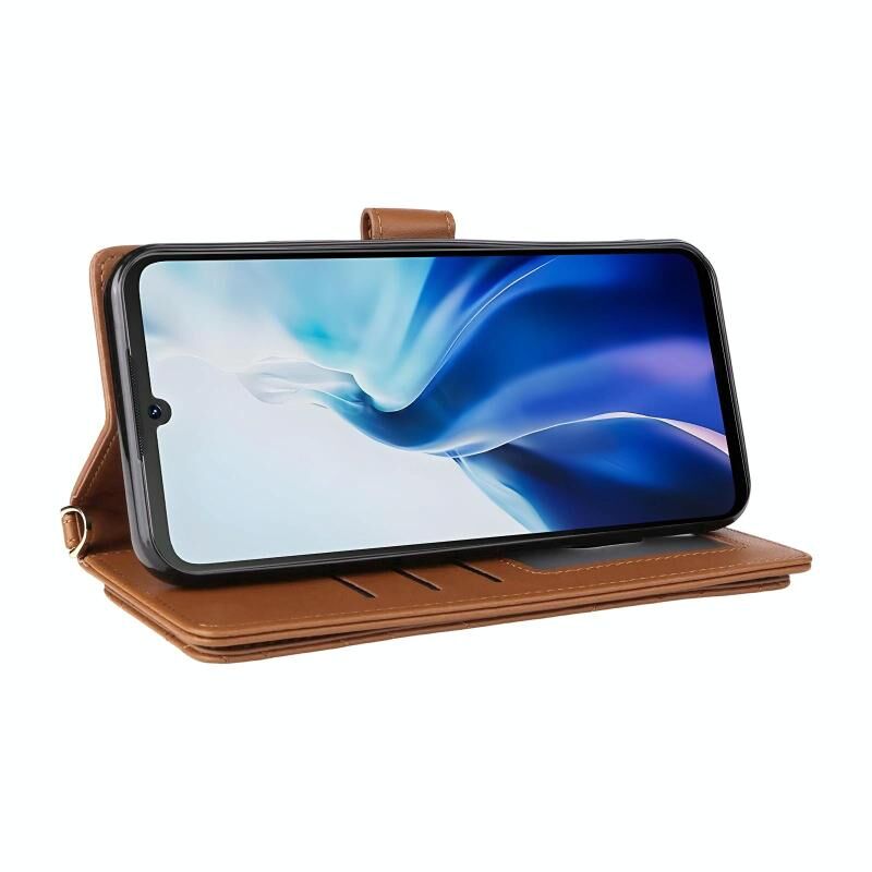 Θήκη τηλεφώνου Cubot A30 πολυλειτουργική από δέρμα με 6 θέσεις για κάρτες και λουρί καρπού (Ροζ)