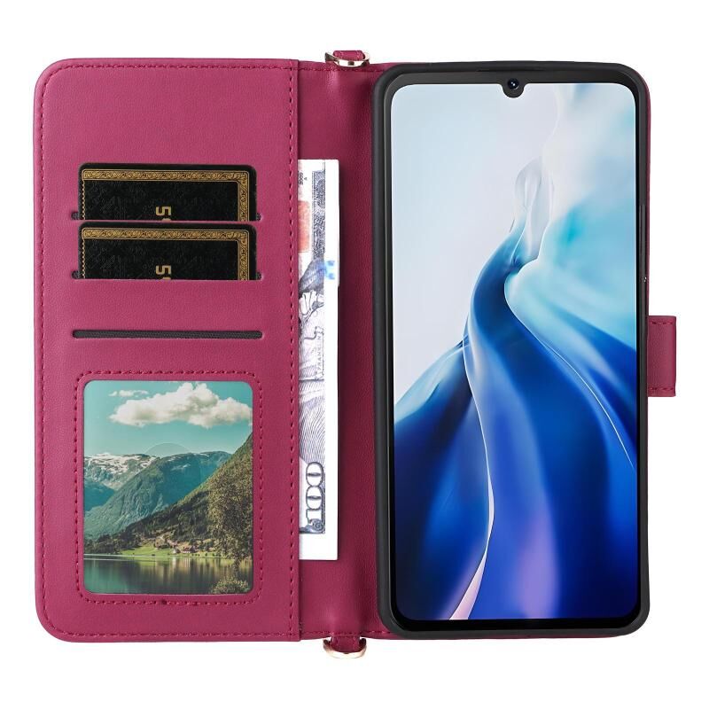 Θήκη τηλεφώνου Cubot A30 πολυλειτουργική από δέρμα με 6 θέσεις για κάρτες και λουρί καρπού (Ροζ)