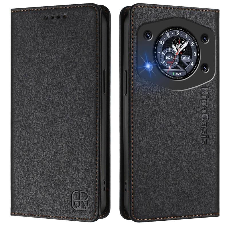 For Cubot A30 RC01 Dual-Folded Magnetic Suction RFID Leather Phone Case(Black)