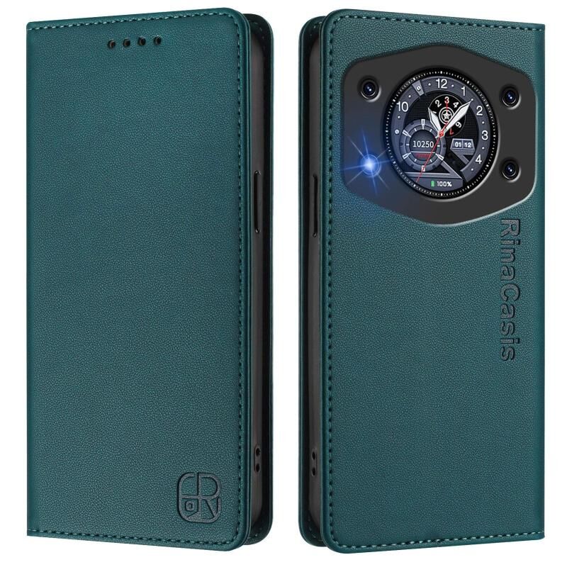 For Cubot A30 RC01 Dual-Folded Magnetic Suction RFID Leather Phone Case(Dark Green)