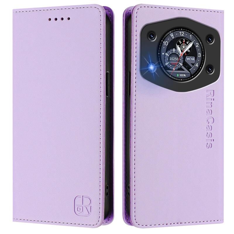 For Cubot A30 RC01 Dual-Folded Magnetic Suction RFID Leather Phone Case(Light Purple)
