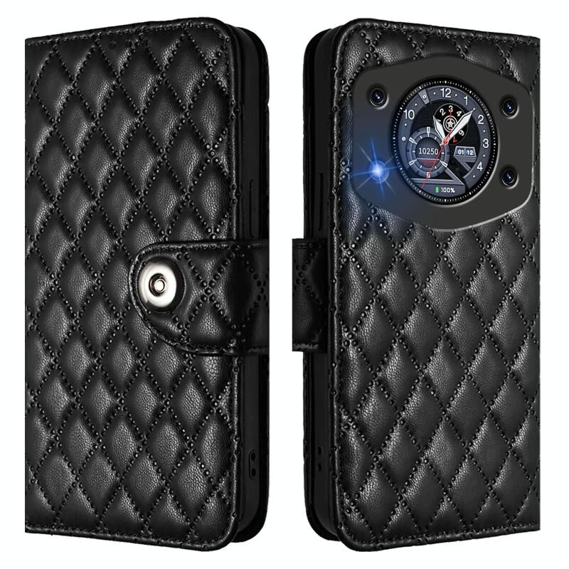 Θήκη τηλεφώνου Cubot A30 με δερμάτινη υφή ρόμβου και λουρί (Μαύρο)