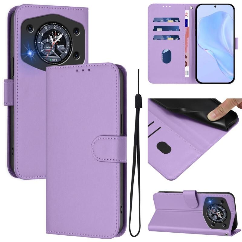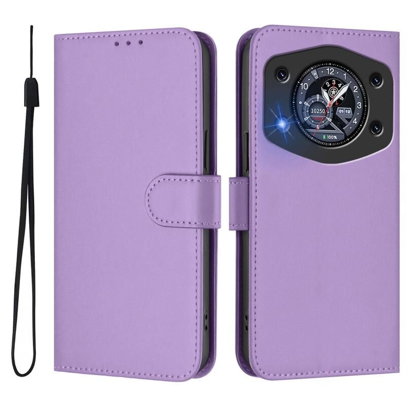 For Cubot A30 Skin Feel Solid Color Leather Phone Case with Lanyard(Lavender Purple)