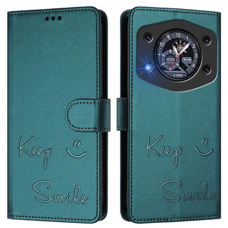 For Cubot A30 Smile Embossing RFID Leather Phone Case(Peacock Green)