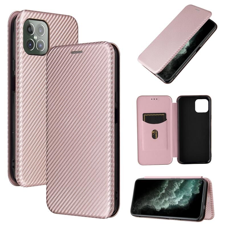 Για Cubot C30 Carbon Fiber υφή οριζόντια Flip TPU + PC + PU δέρμα υπόθεση με υποδοχή κάρτας (ροζ)