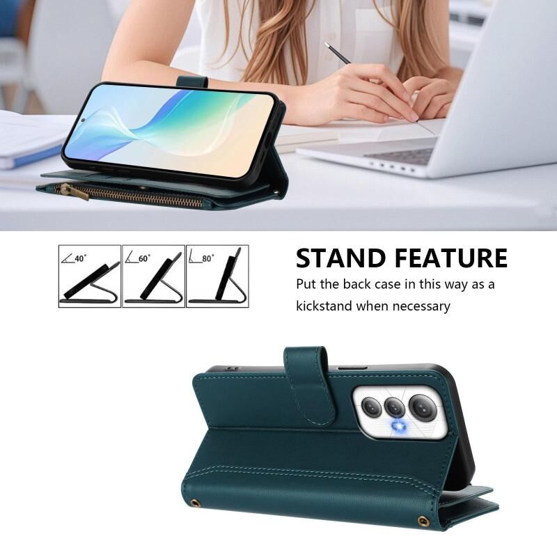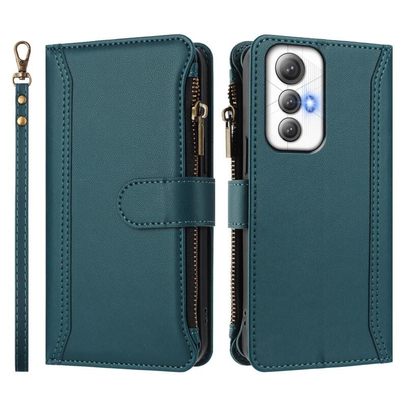 For Cubot Max 5 Magnetic Closure 9 Card Slots Zipper Leather Case with Hand Strap(Dark Green)
