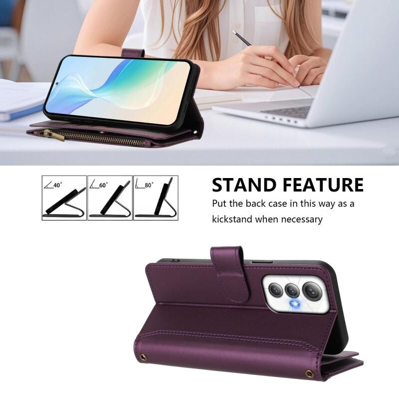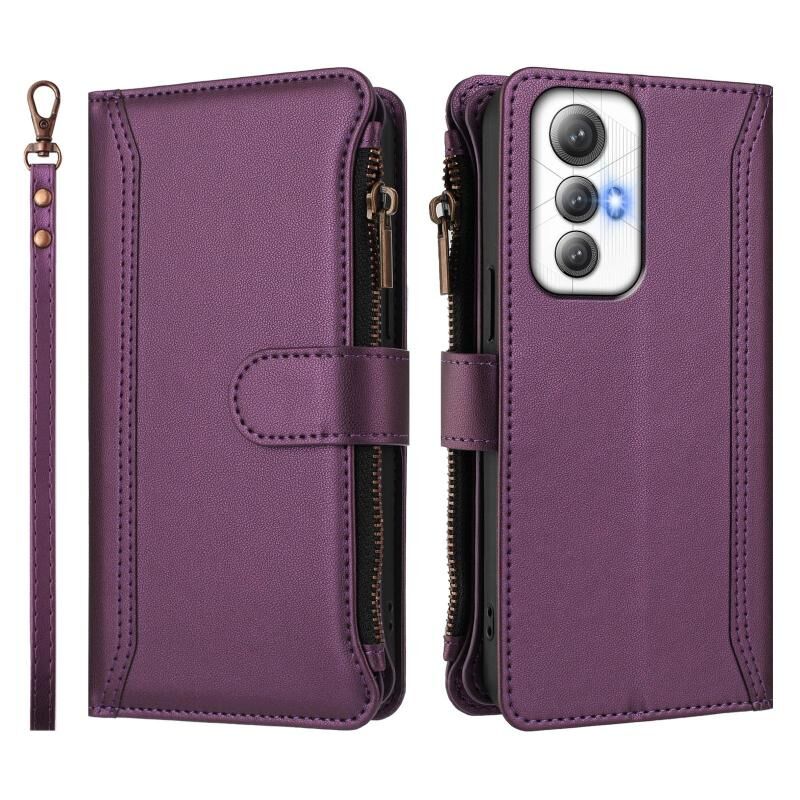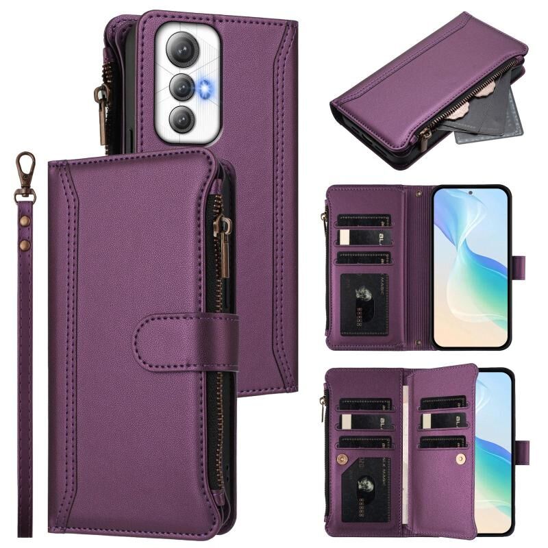 For Cubot Max 5 Magnetic Closure 9 Card Slots Zipper Leather Case with Hand Strap(Purple)