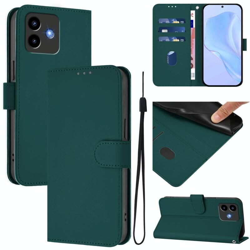 Για το Cubot Note 40 δέρμα αίσθηση στερεό χρώμα δερμάτινη θήκη τηλεφώνου με κορδόνι (σκούρο πράσινο)