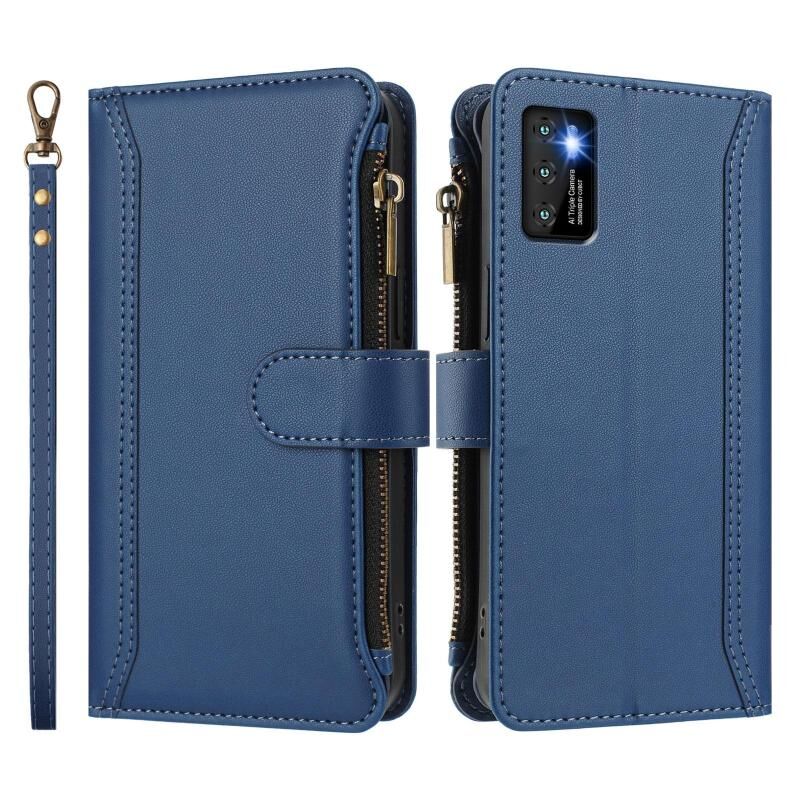 For Cubot P50 Magnetic Closure 9 Card Slots Zipper Leather Case with Hand Strap(Dark Blue)