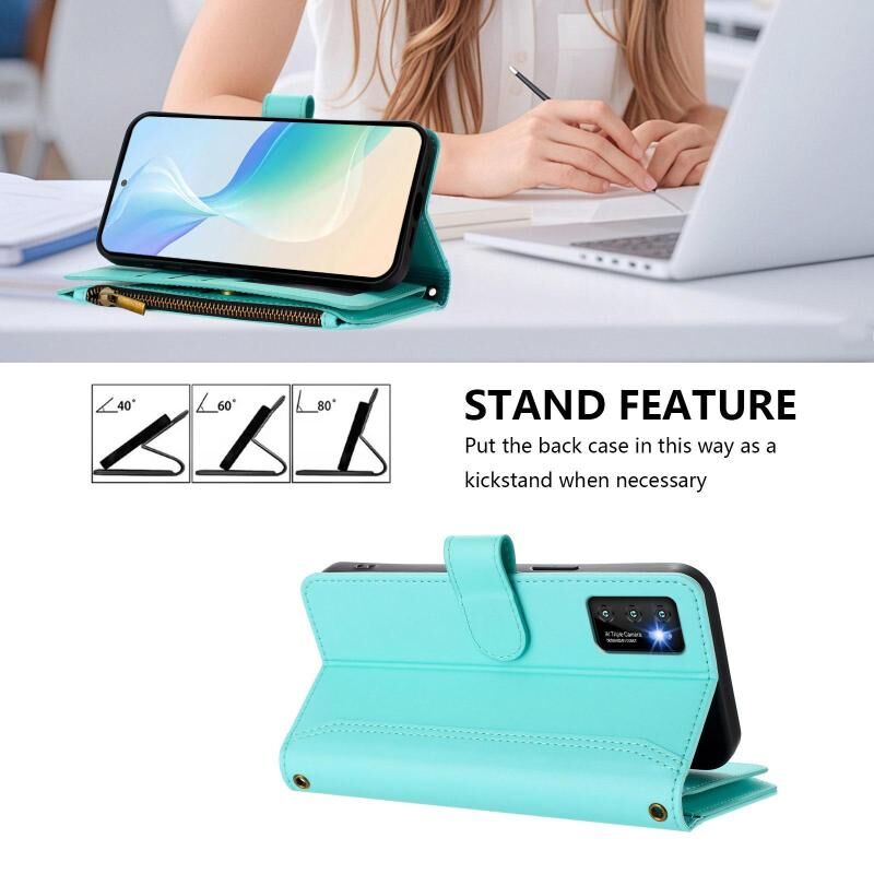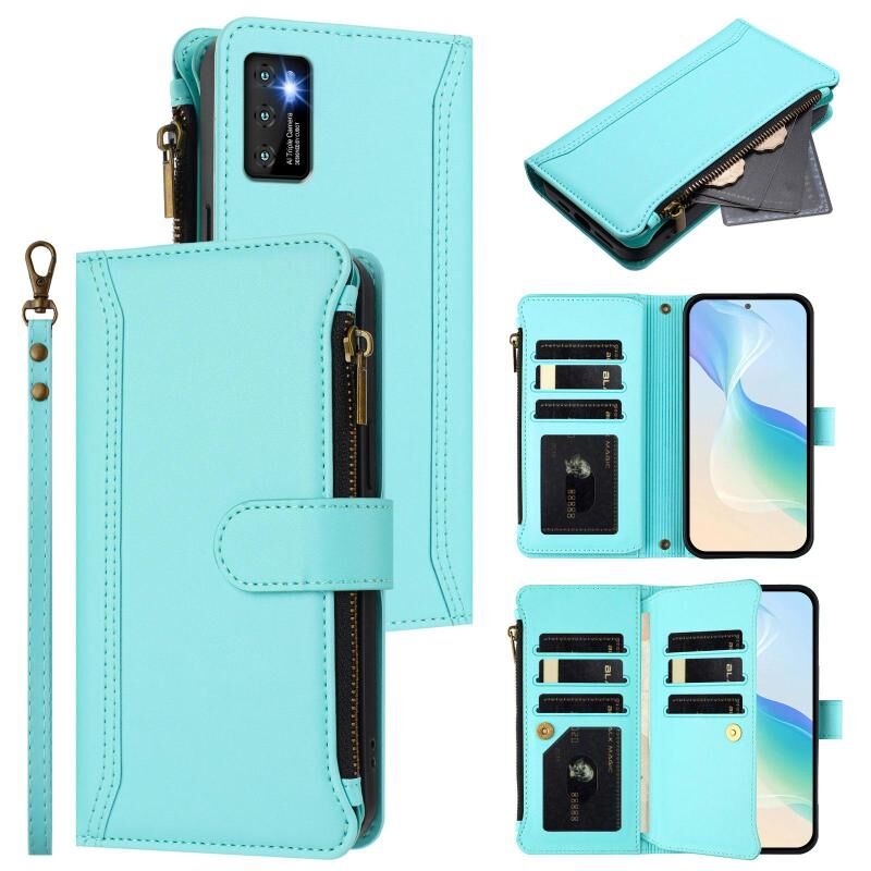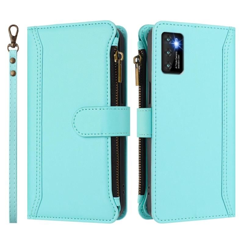 For Cubot P50 Magnetic Closure 9 Card Slots Zipper Leather Case with Hand Strap(Mint Green)