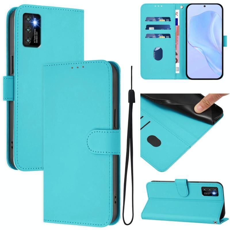 Για το Cubot P50 Skin Feel Solid Color δερμάτινη θήκη τηλεφώνου με κορδόνι (Lake Blue)