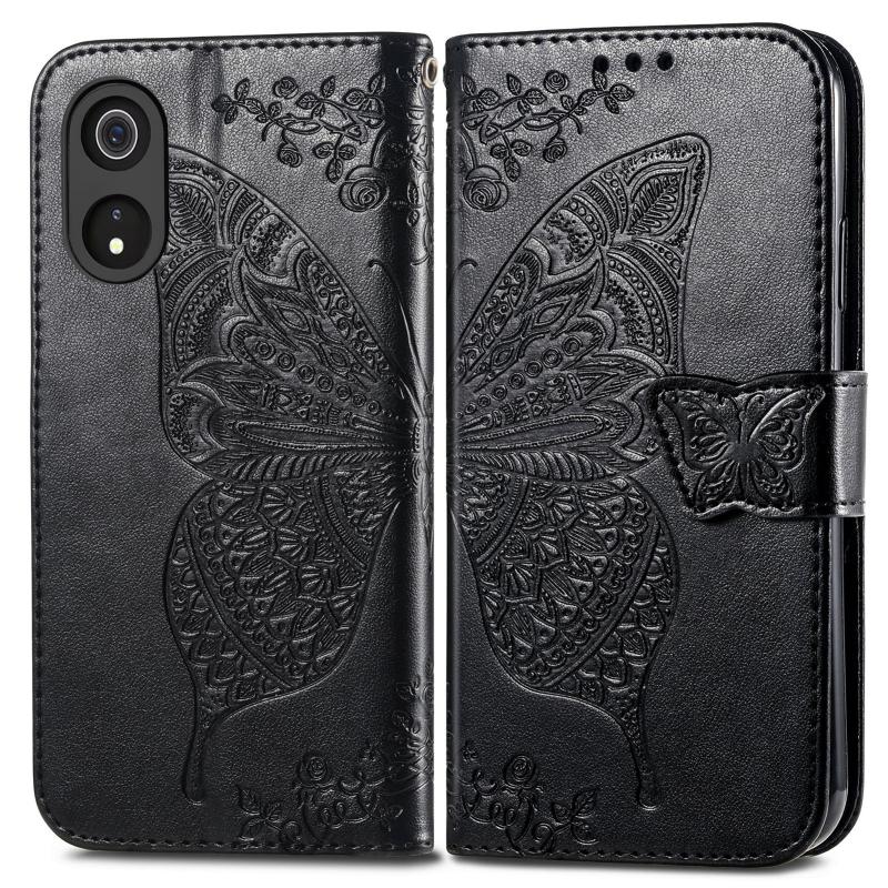 For Cubot P60 Butterfly Love Flower Embossed Leather Phone Case(Black)