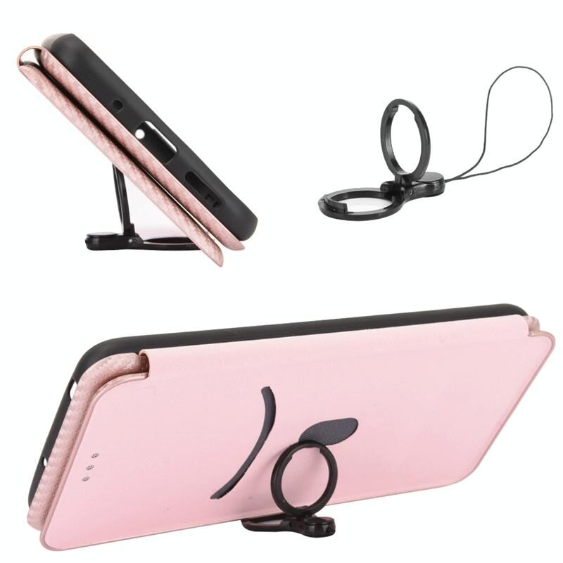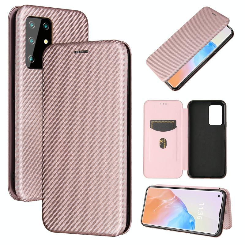 For Cubot X30 Carbon Fiber Texture Horizontal Flip TPU + PC + PU Leather Case with Card Slot(Pink)