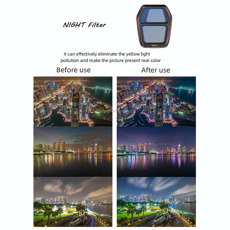 3. The aviation-grade aluminum frame is laser engraved with a matte black finish to prevent light leakage or ghosting, ensuring that each filter has been rigorously tested and will not add extra burden to your gimbal or interfere with the normal flight of the drone. It weighs only 5 grams.