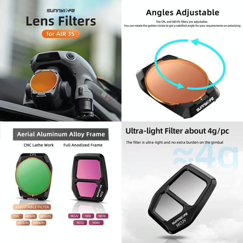 2. CPL Filters: Increases color saturation, creating deep, rich scenic images. Helps to reduce the amount of light entering the lens.