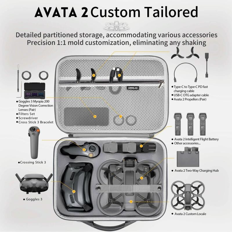 1. Specially designed for DJI Avata 2, and can also store Avata 2 aircraft and accessories.