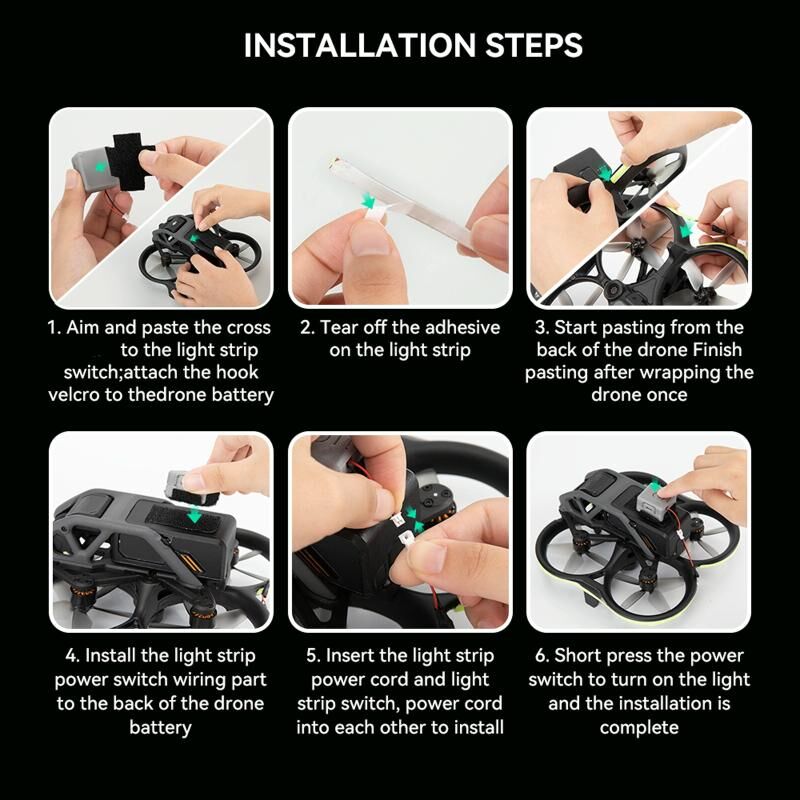 4. Το τροφοδοτικό της λωρίδας φωτός εγκαθίσταται με γάντζο και θηλιά. Απλώς κολλήστε την επιφάνεια του γάντζου σε κάθε μπαταρία drone και το τροφοδοτικό της λωρίδας φωτός μπορεί εύκολα να αποσυναρμολογηθεί.