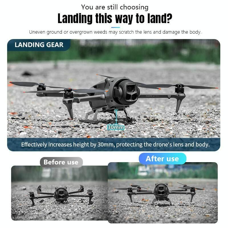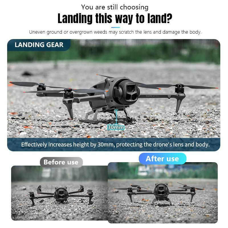 2. 30mm Height Extension: Increases the ground clearance by 30mm, reducing impact during takeoff and landing on uneven surfaces. It effectively protects the drone body, gimbal, and propellers from dirt, debris, and potential damage.