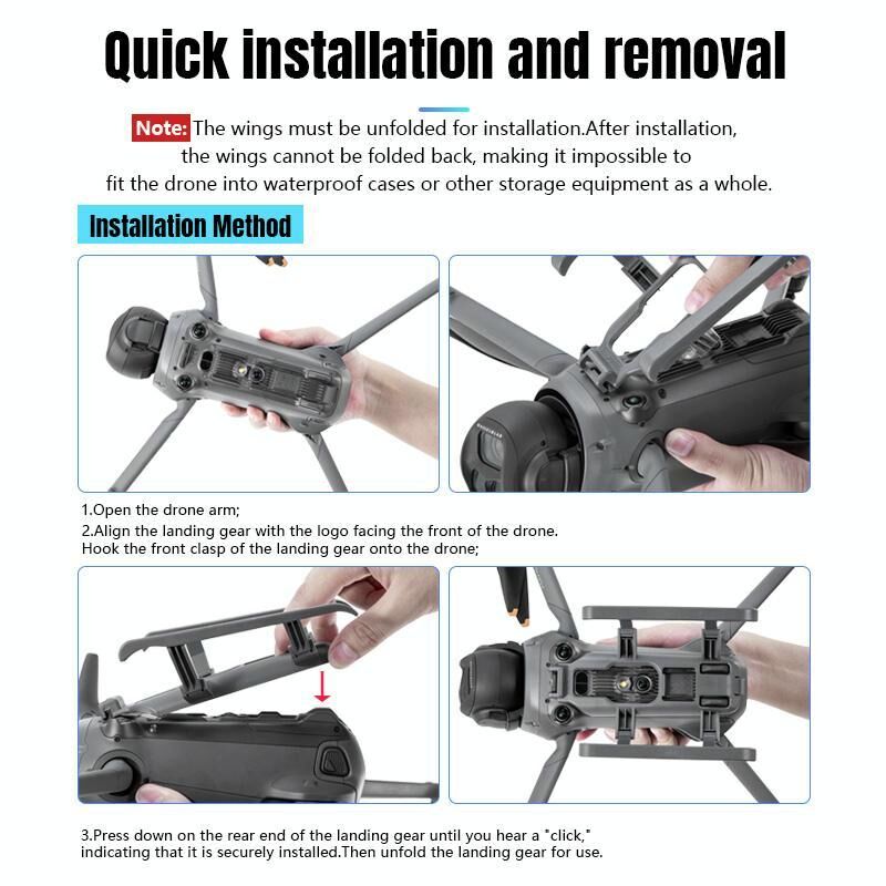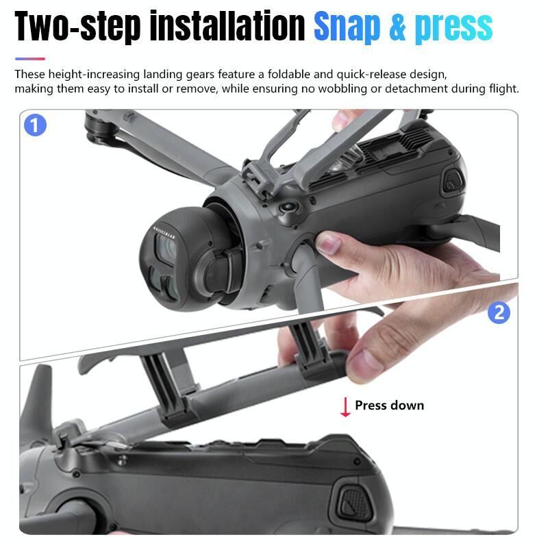 4. Custom Fit with Foldable Quick-Release Design: Easy to install and remove, the landing gear stays securely attached during flight without wobbling or falling off. Battery replacement can be done quickly without removing the gear.