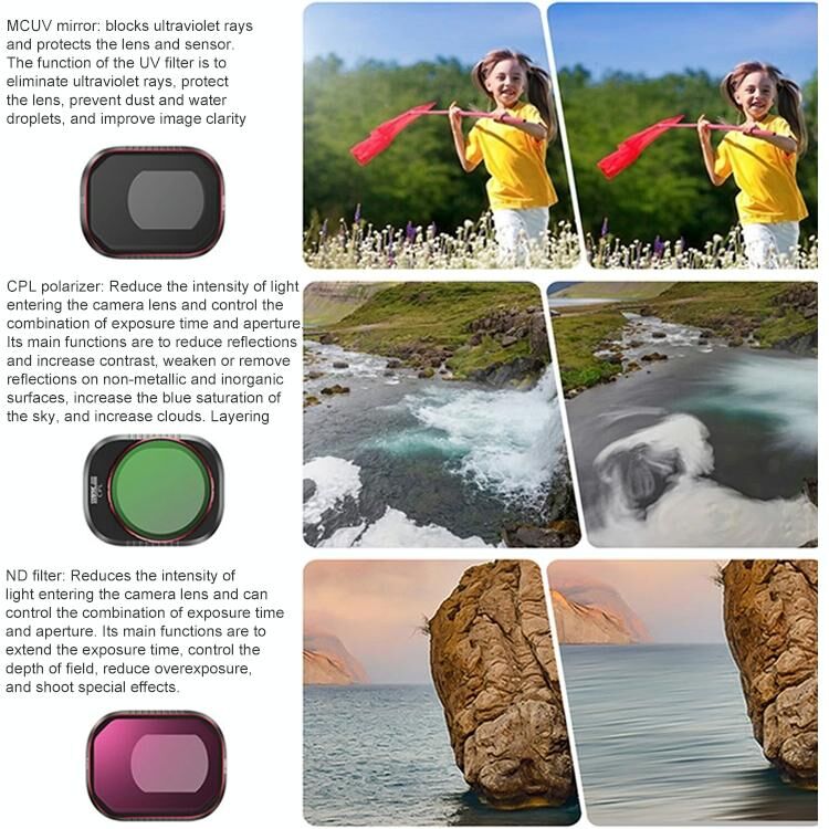 2. Φίλτρα CPL: Αυξάνει τον κορεσμό των χρωμάτων, δημιουργώντας βαθιές, πλούσιες γραφικές εικόνες. Βοηθά στη μείωση της ποσότητας του φωτός που εισέρχεται στο φακό.