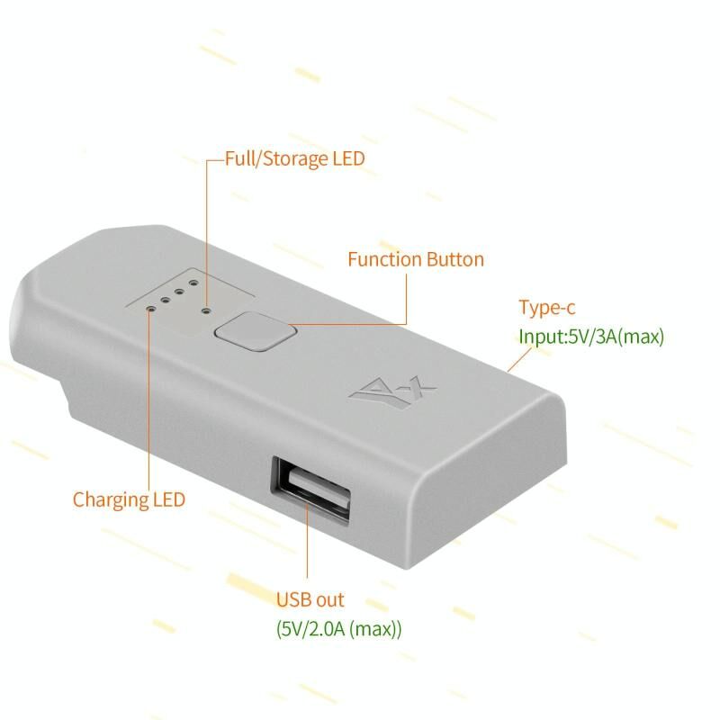 2. Δύο λειτουργίες: Η λειτουργία πλήρους φόρτισης φορτίζει γρήγορα την μπαταρία. Η λειτουργία αποθήκευσης φορτίζει την μπαταρία με επίπεδο κάτω του 60% περίπου στο 60-65% για μακροχρόνια αποθήκευση, μειώνοντας την εξασθένηση και το πρήξιμο της μπαταρίας του drone που προκαλείται από το άδειο ή πλήρως φορτισμένο