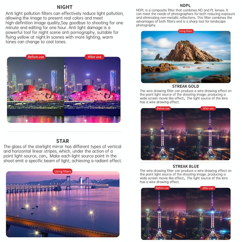 8 σε 1 Mixed Filter: UV, CPL, ND8, ND16, ND3,2 ND64, NIGHT, STAR