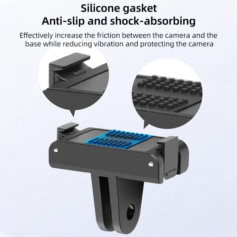 3. Easy to install and disassemble. Built-in strong magnets, the quick-release base and the camera are instantly adsorbed into place. The magnetic suction and the two claws work together to secure the camera firmly; the camera can be disassembled by lightly pressing the claw release buttons at both ends at the same time.
