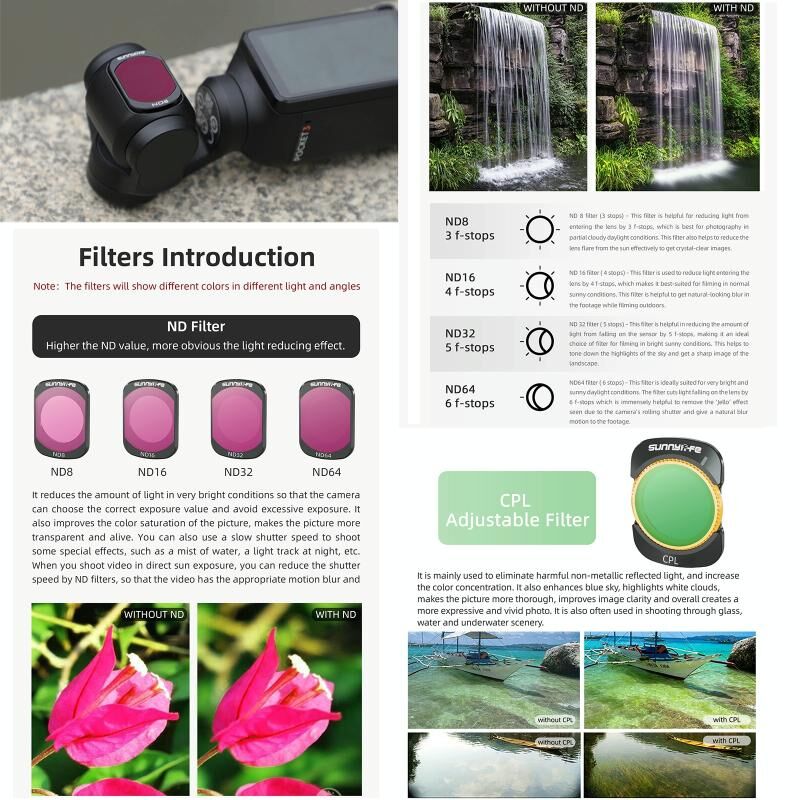 Για DJI Osmo Pocket 3, Μαγνητικό Μεταλλικό Φίλτρο Φακού Sunnylife, Χωρίς Επίδραση στην Επαναφορά της Γυροσκοπικής Σταθεροποίησης, Φίλτρο: ND16PL (Sunnylife)