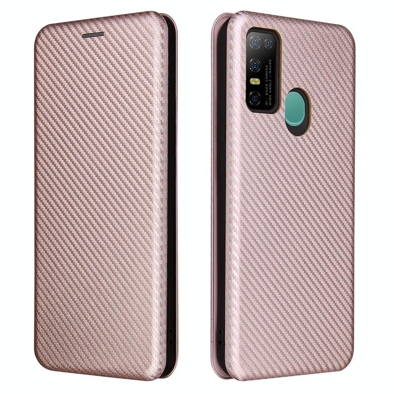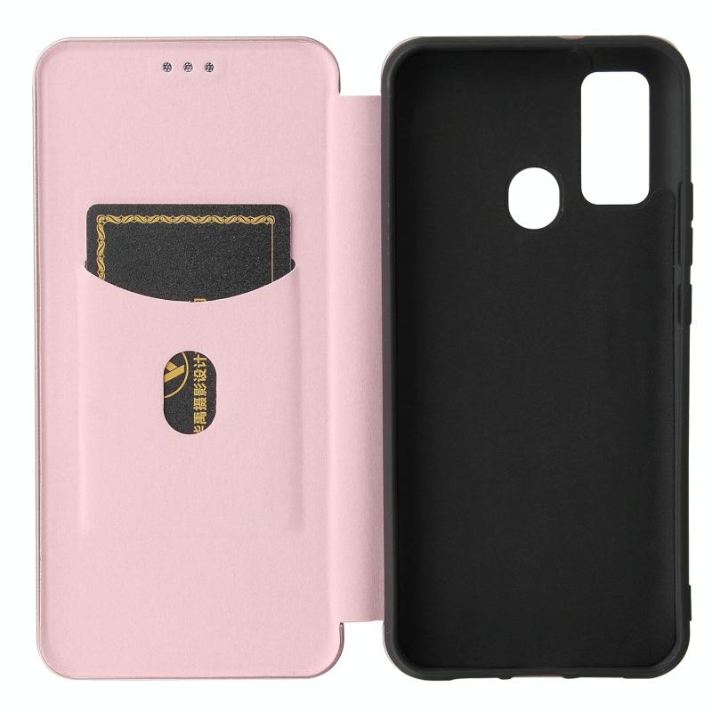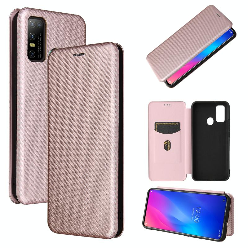 For DOOGEE N30 Carbon Fiber Texture Horizontal Flip TPU + PC + PU Leather Case with Card Slot(Pink)