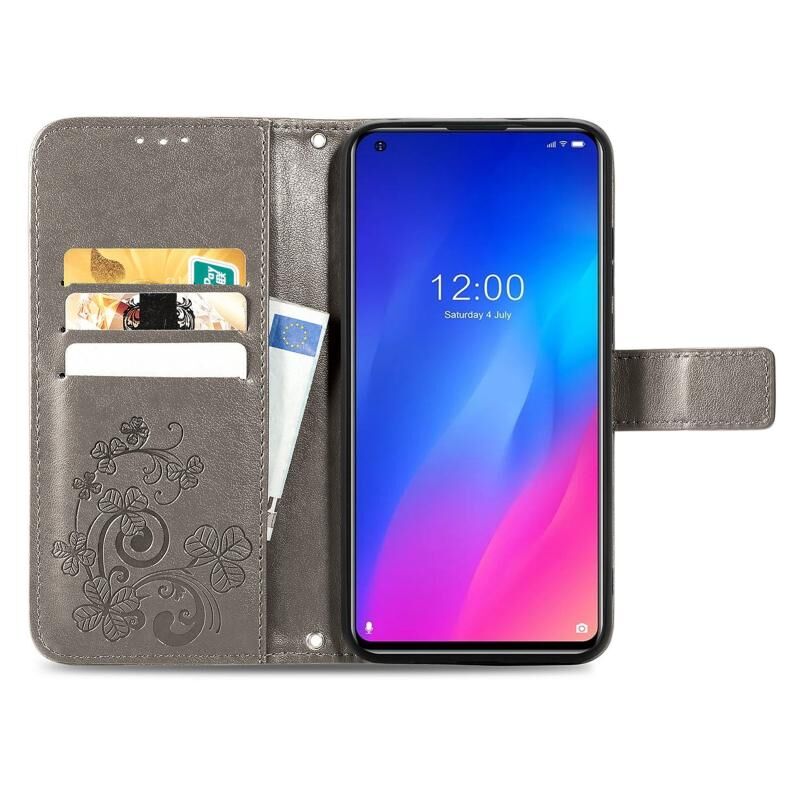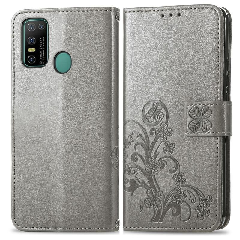 For Doogee N30 Four-leaf Clasp Embossed Buckle Mobile Phone Protection Leather Case(Grey)