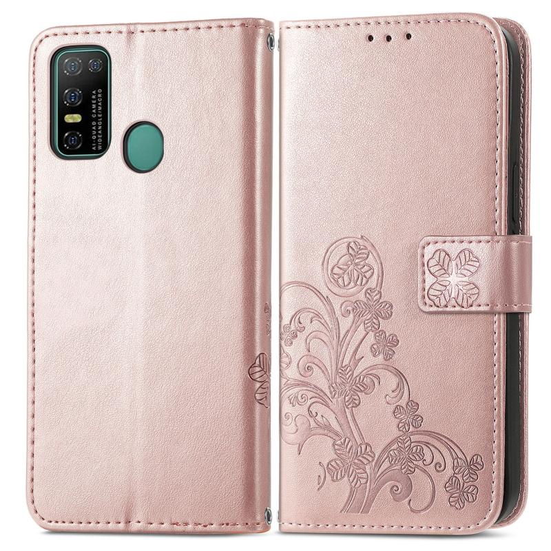 For Doogee N30 Four-leaf Clasp Embossed Buckle Mobile Phone Protection Leather Case(Rose Glod)