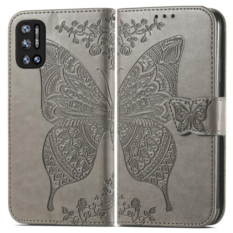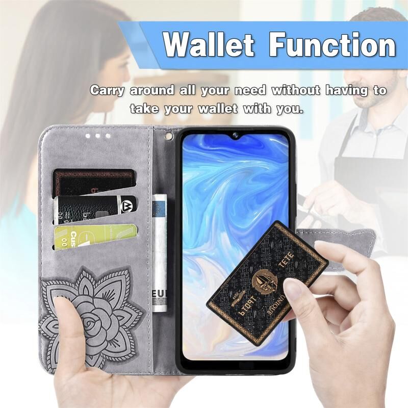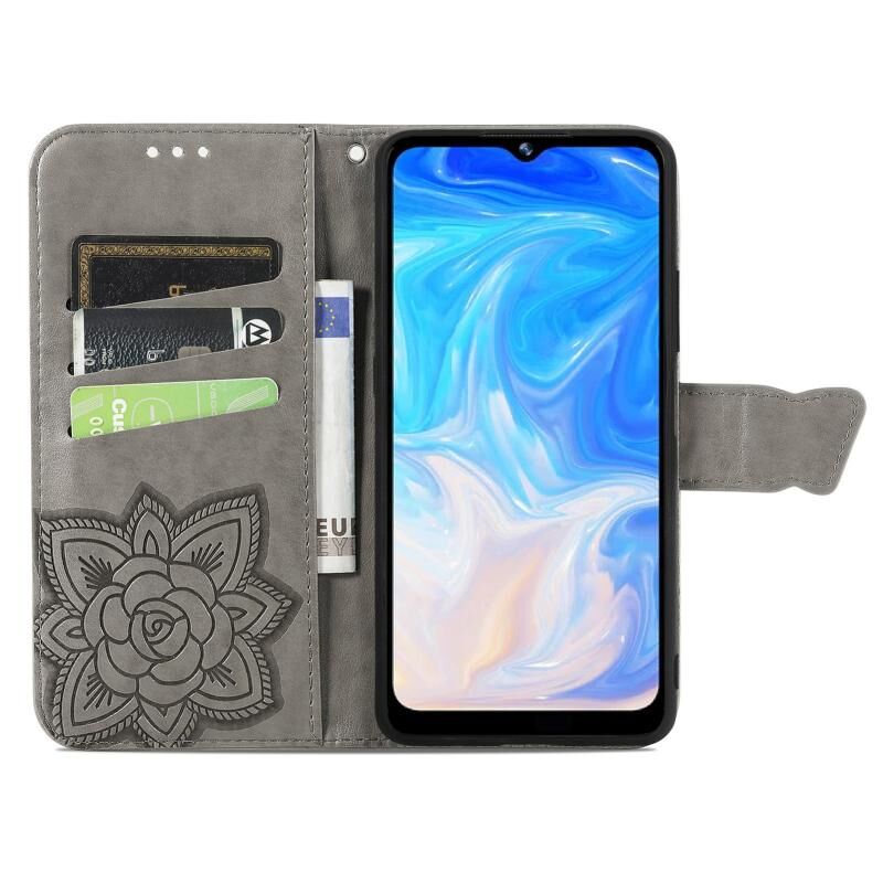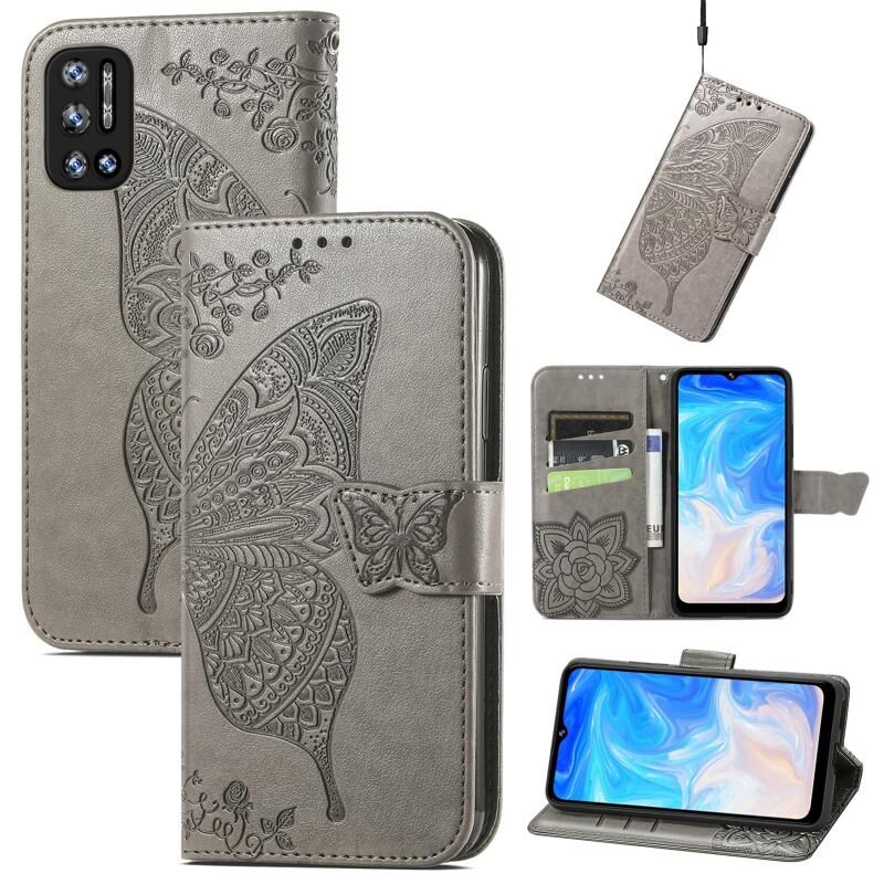 Για DOOGEE N40 Pro πεταλούδα αγάπη λουλούδια ανάγλυφο οριζόντια Flip δερμάτινη θήκη με κάτοχο & υποδοχές για κάρτες & πορτοφόλι & κορδόνι (γκρι)