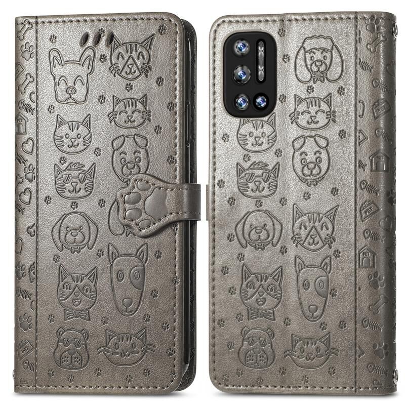 Για Doogee N40 Pro Cat και Dog ανάγλυφο οριζόντια Flip τηλέφωνο δερμάτινη θήκη με κάτοχο & υποδοχή για κάρτες & πορτοφόλι & κορδόνι (γκρι)
