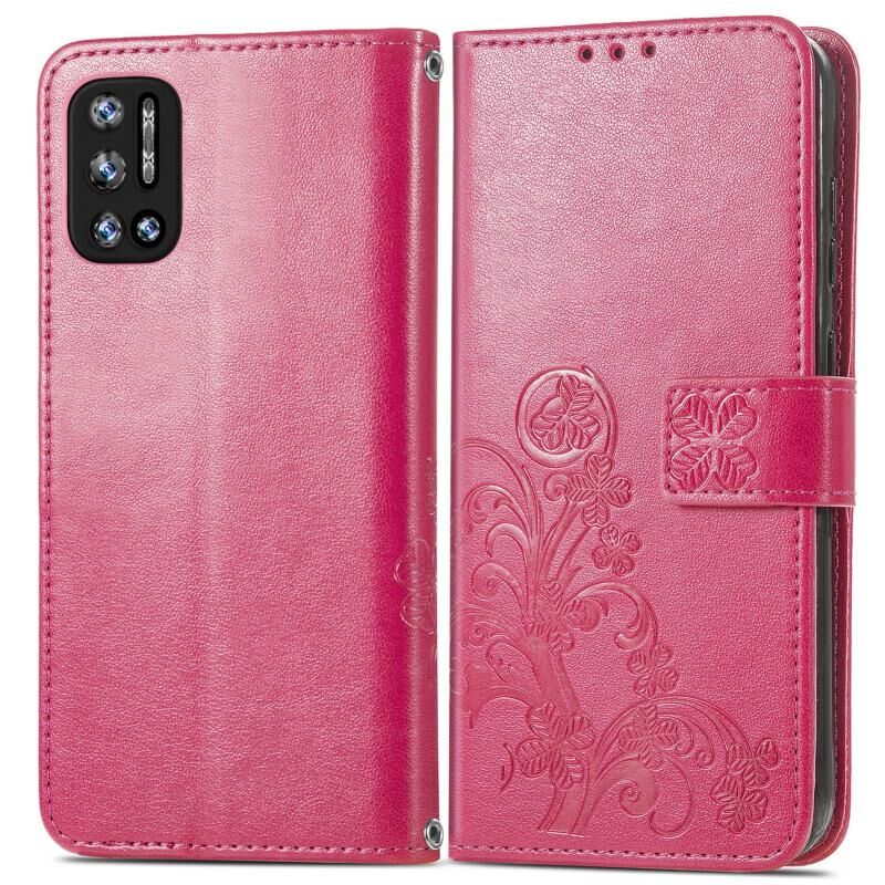 Για DOOGEE N40 Pro Four-leaf Clasp ανάγλυφη δερμάτινη θήκη με κορδόνι & υποδοχή για κάρτες & πορτοφόλι & κάτοχος (Magenta)