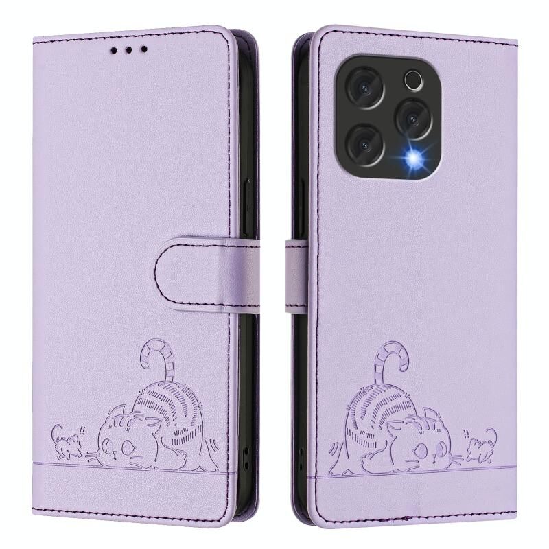 Θήκη τηλεφώνου Doogee N55 Plus Cat Rat Embossed Pattern RFID από δέρμα με κορδόνι (Μωβ)