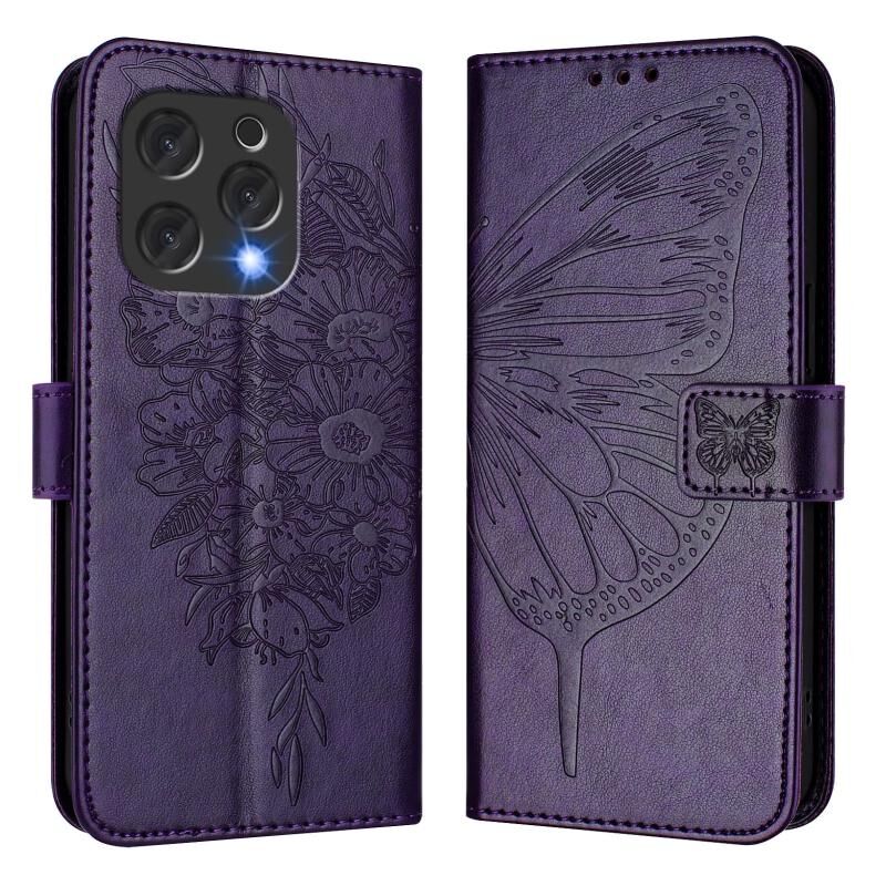 Θήκη τηλεφώνου από δέρμα με ανάγλυφο σχέδιο πεταλούδας για Doogee N55 Plus (Σκούρο μωβ)