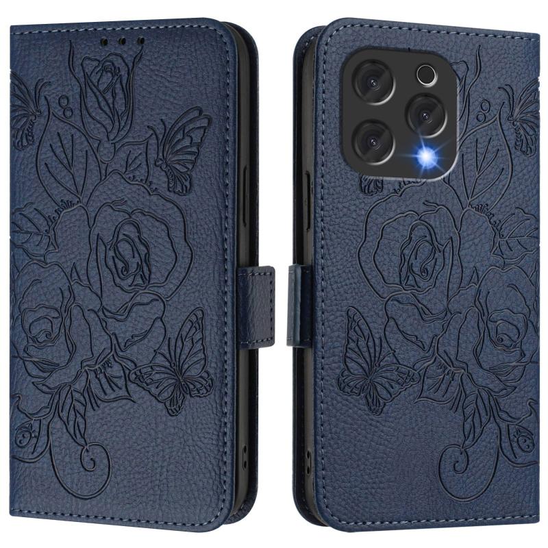 For Doogee N55 Plus Embossed Rose RFID Anti-theft Leather Phone Case(Dark Blue)